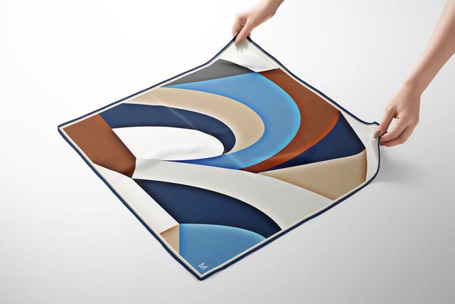 Foulard in seta con sfera in marmo e contenitore in vetro.