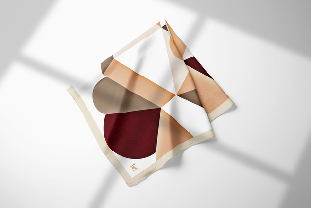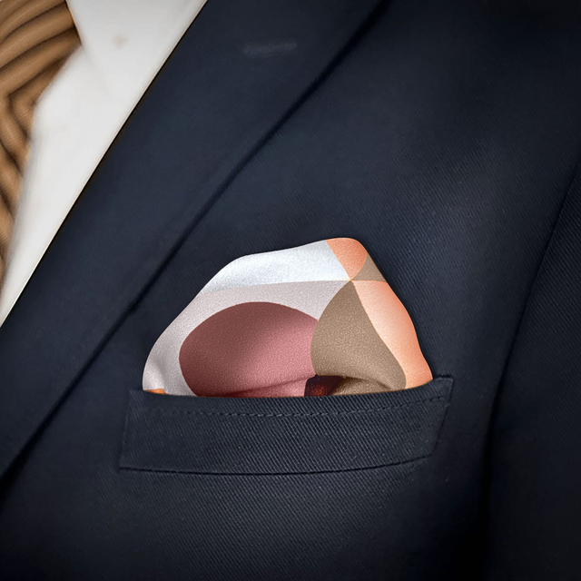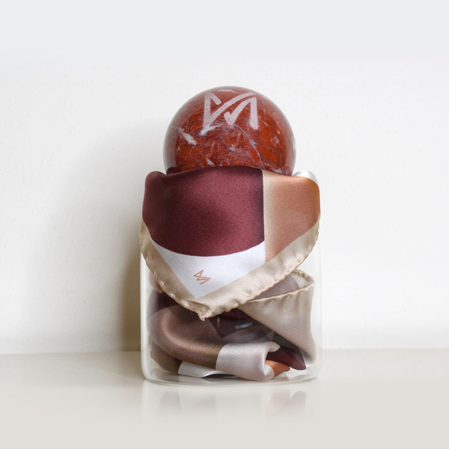Fazzoletto da taschino/pochette in twill di seta di Como, con sfera in marmo e contenitore in vetro.