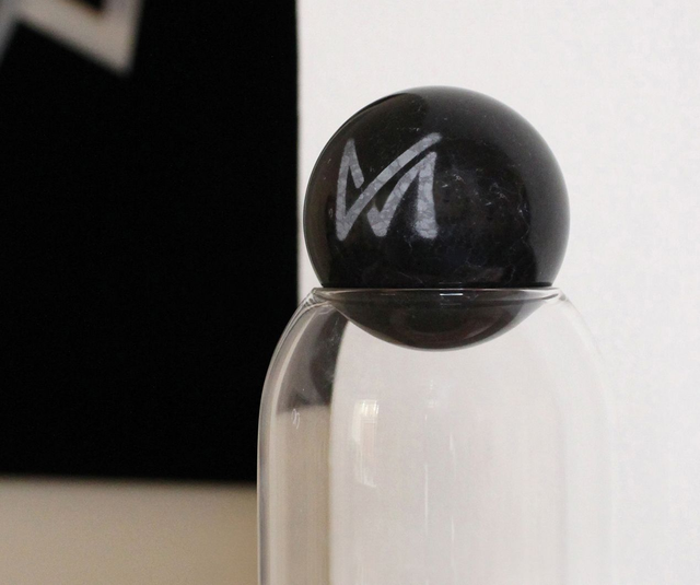 Fazzoletto da taschino/pochette in twill di seta di Como, con sfera in marmo e contenitore in vetro.