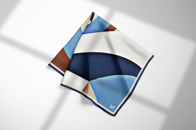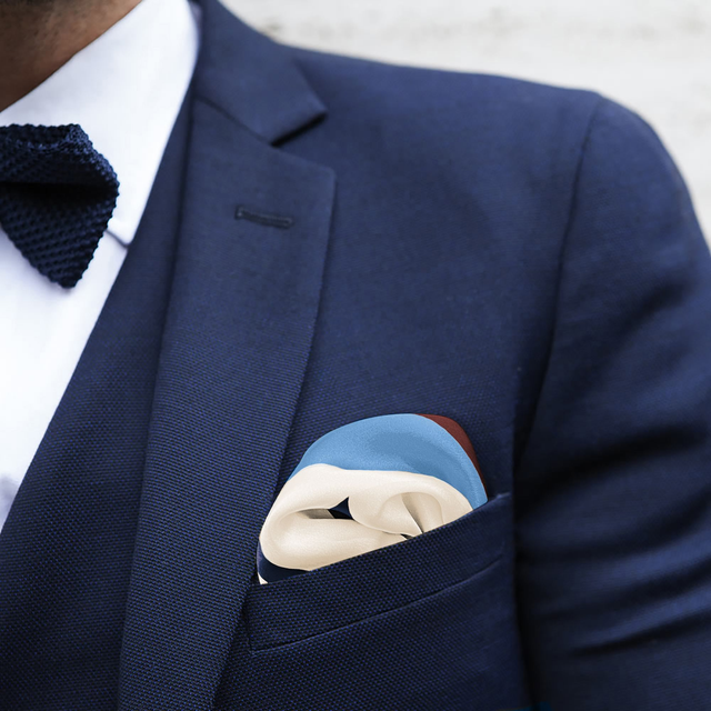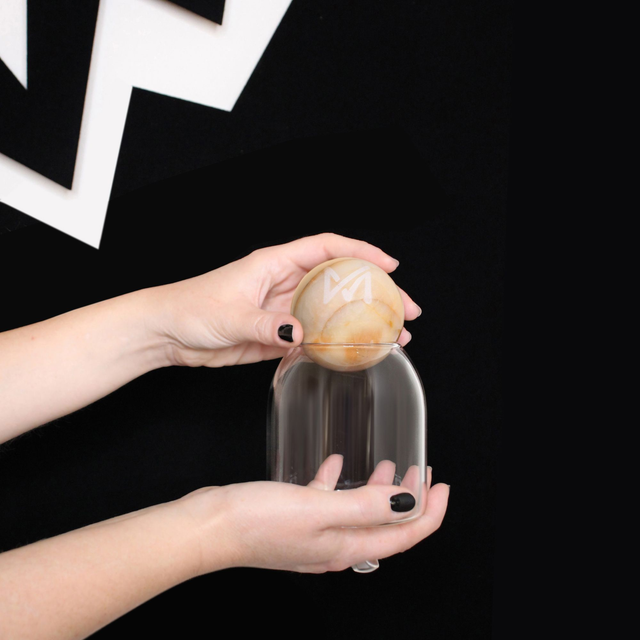 Fazzoletto da taschino/pochette in twill di seta di Como, con sfera in marmo e contenitore in vetro.